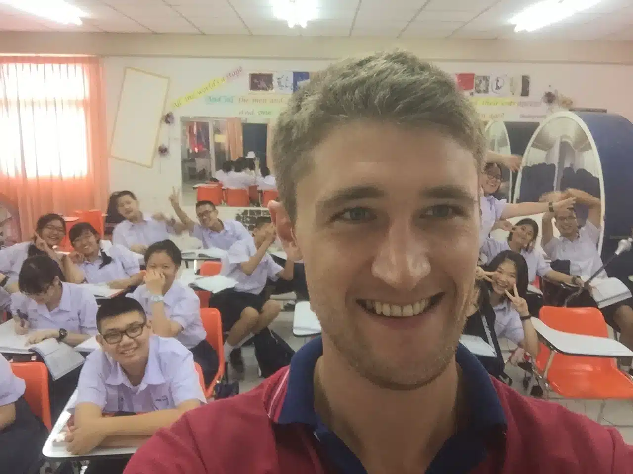 My friend and I have been teaching here for five months now. It was daunting at first as I teach high school age students, but it’s definitely the most rewarding job I’ve ever had. The students in Thailand have what I would describe as ‘next level’ respect for their teachers but they’re still as cheeky as the Thai monkeys that go for your passport. Every one of my students is a little legend in the making, and teaching them English is a challenge that I now relish on a daily basis.
