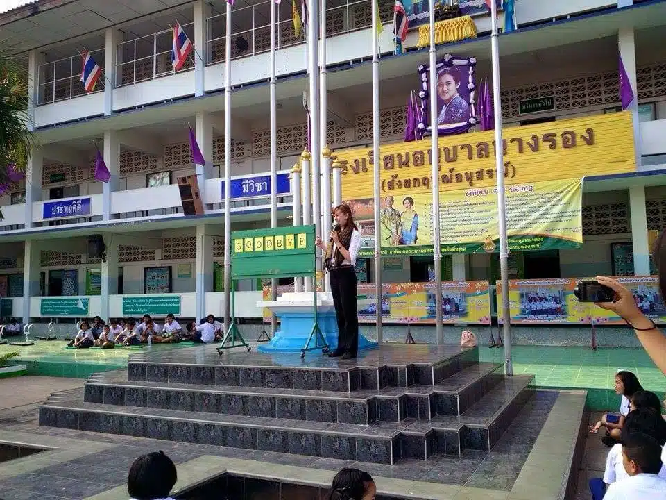 I am currently teaching in rural Thailand, in a small town located in the Buriram province. I have been here a year now and have taught in 2 government primary schools in this area. My first school had 1800 students and 1000 of them I taught, with classes averaging at about 56 students. It was a bit daunting and scary at first but ended up being so much fun. My second school had about 1000 students and I only taught about 400 of them. It was kind of nice to take a back seat after a crazy-busy first term. I had two very similar schools but two completely different experiences.