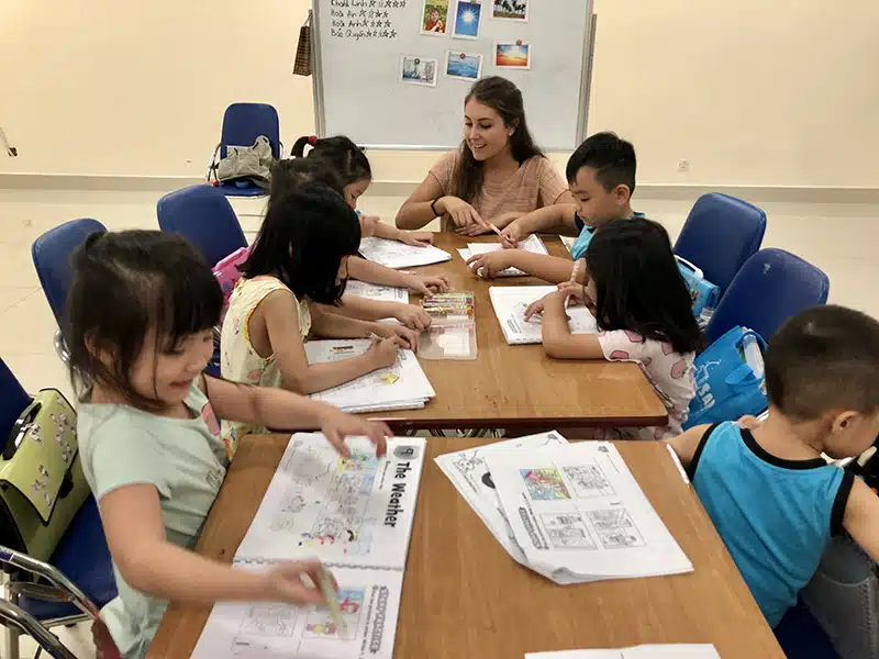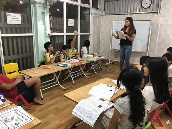 My first time teaching a lesson wasn’t at all what I had expected. To gain some experience I did a cover (substitute) lesson for a friend who couldn’t make it into work that day. After a 45-minute drive on the back of a motorbike through farms and rice fields I found myself at the entrance to the English language center. I was handed a rough lesson plan, some flashcards and guided to the classroom. My anxiety disappeared as soon as I saw the smiles on the children’s faces and the teaching itself came naturally. It was pleasantly surprising to feel how rewarding it is to leave the classroom knowing you are making a difference in so many children’s lives.